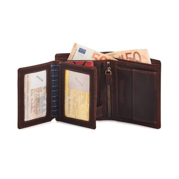 Two leather currency compartment